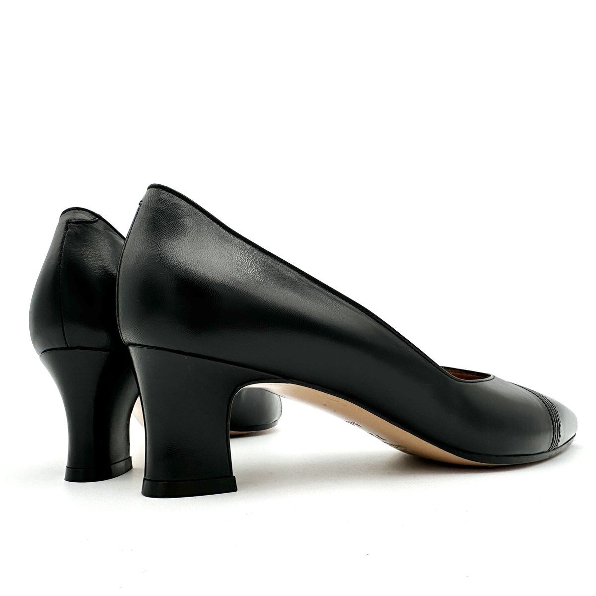 高級感漂う本革仕上げのキャップトゥパンプス。