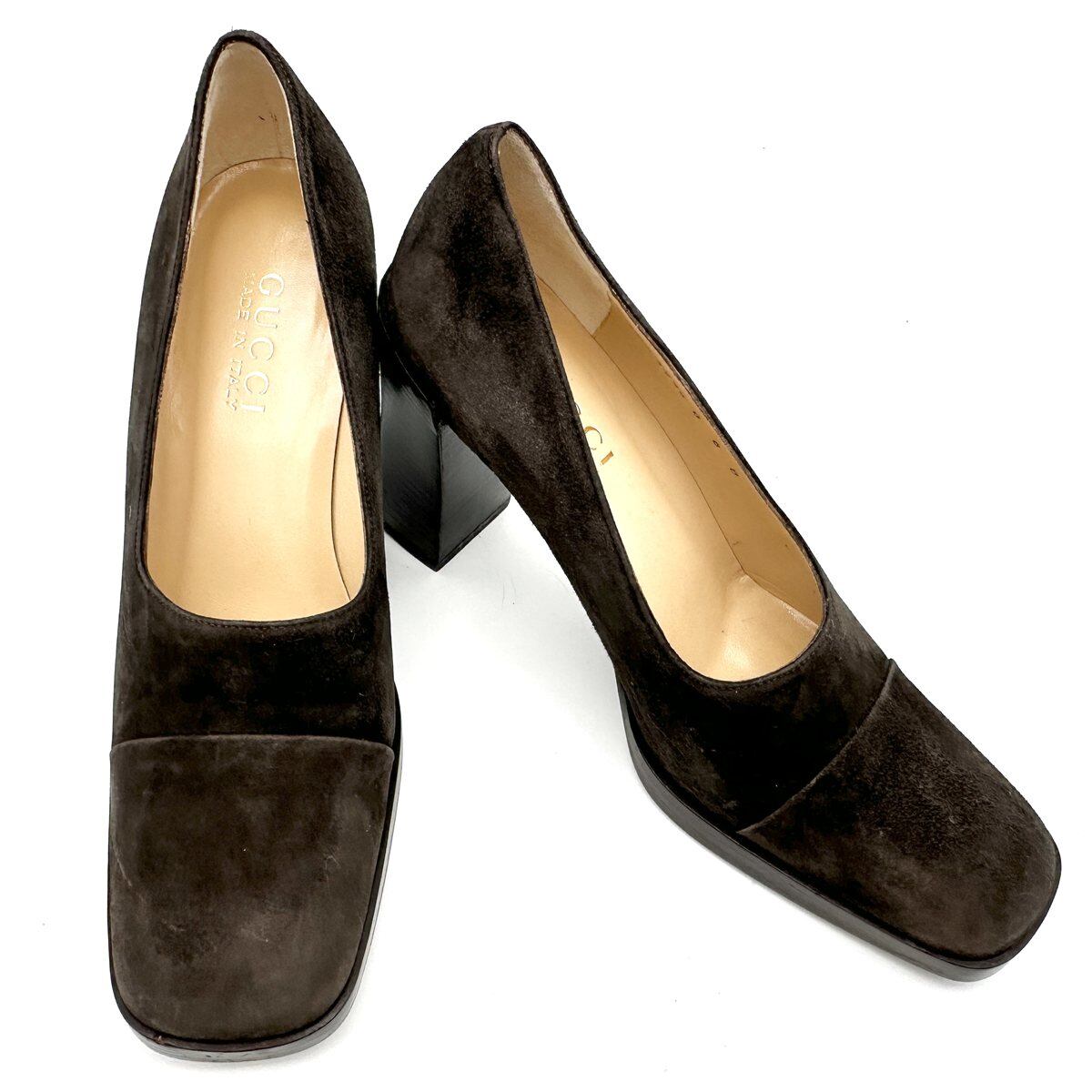 GUCCI ハイヒール スエード チャンキーヒール スクエアトゥ ブラウン 2204T