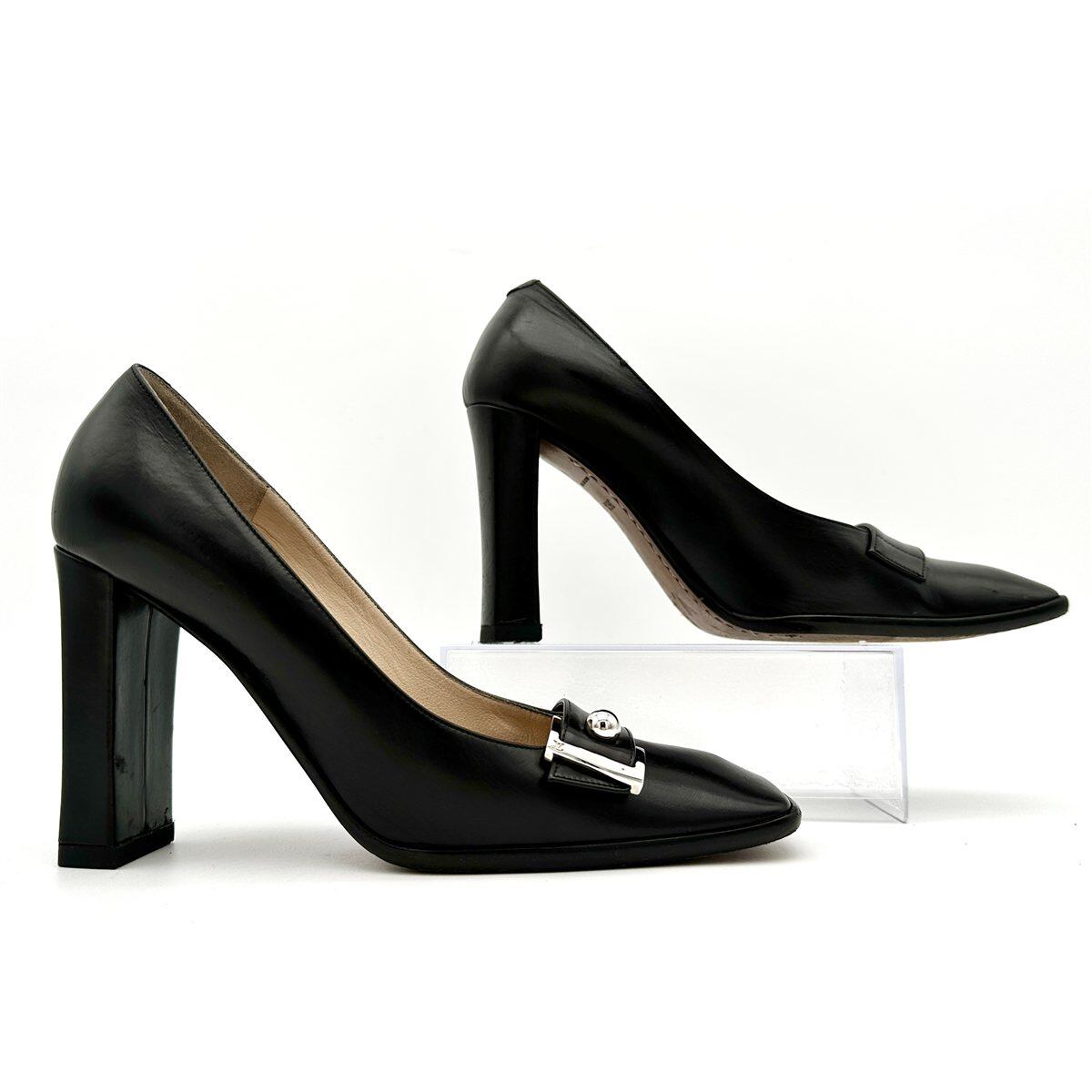 LOUIS VUITTON ハイヒール 本革 シルバーロゴ スクエアトゥ ブラック 2228T