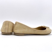 Tory Burch フラットシューズ ロゴチャーム 刺繍 リボン ベージュ 2120A