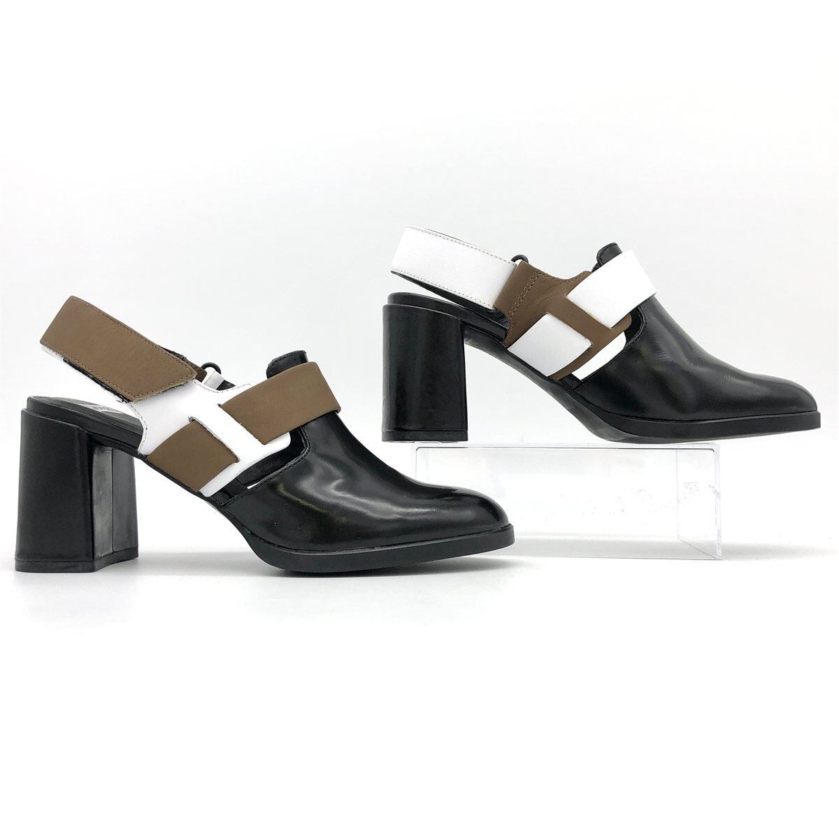 Camperの「ツインズ」シリーズ、バックストラップ付き本革ミュールです。