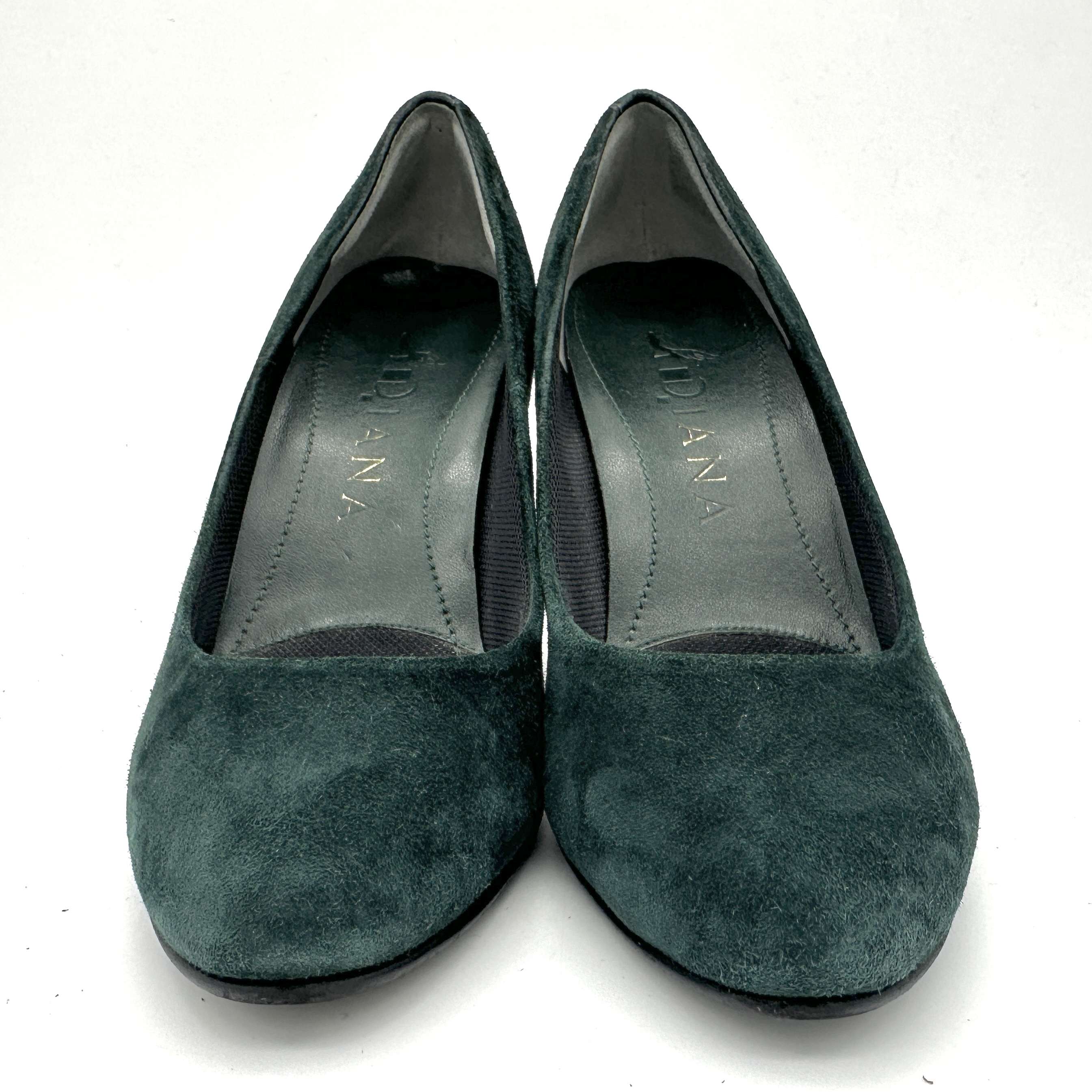 美品のダークグリーンスエードヒールは気品と個性を融合した逸品◎