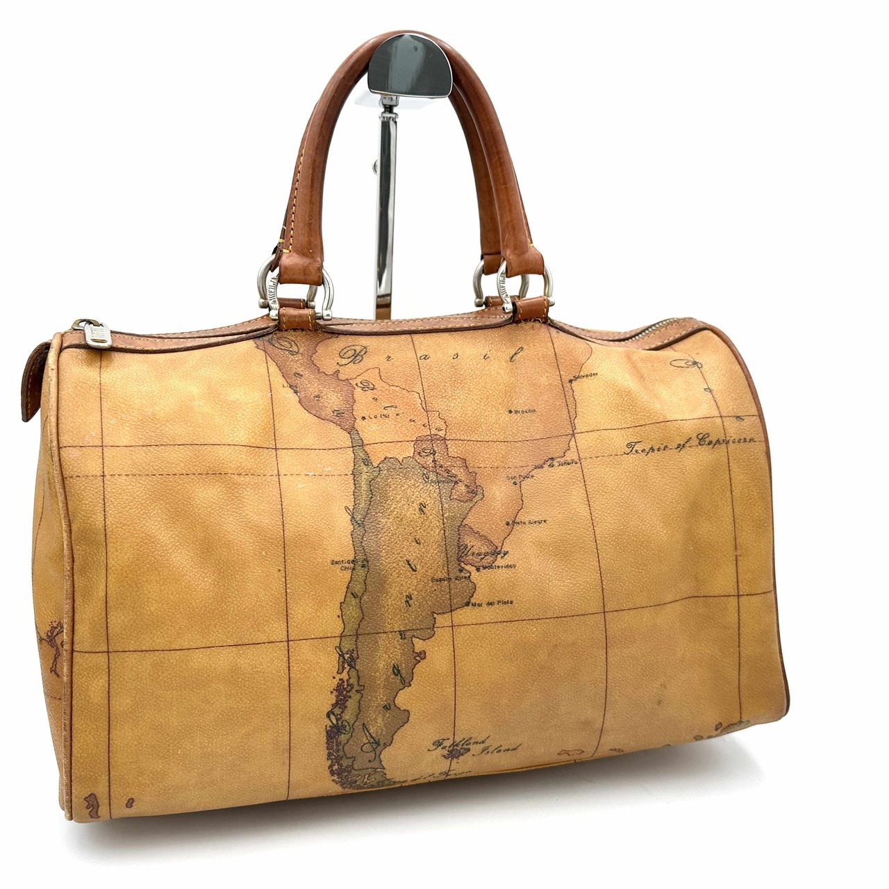 PRIMA CLASSE ミニボストンバッグ 本革 地図柄 キャメル 1277T