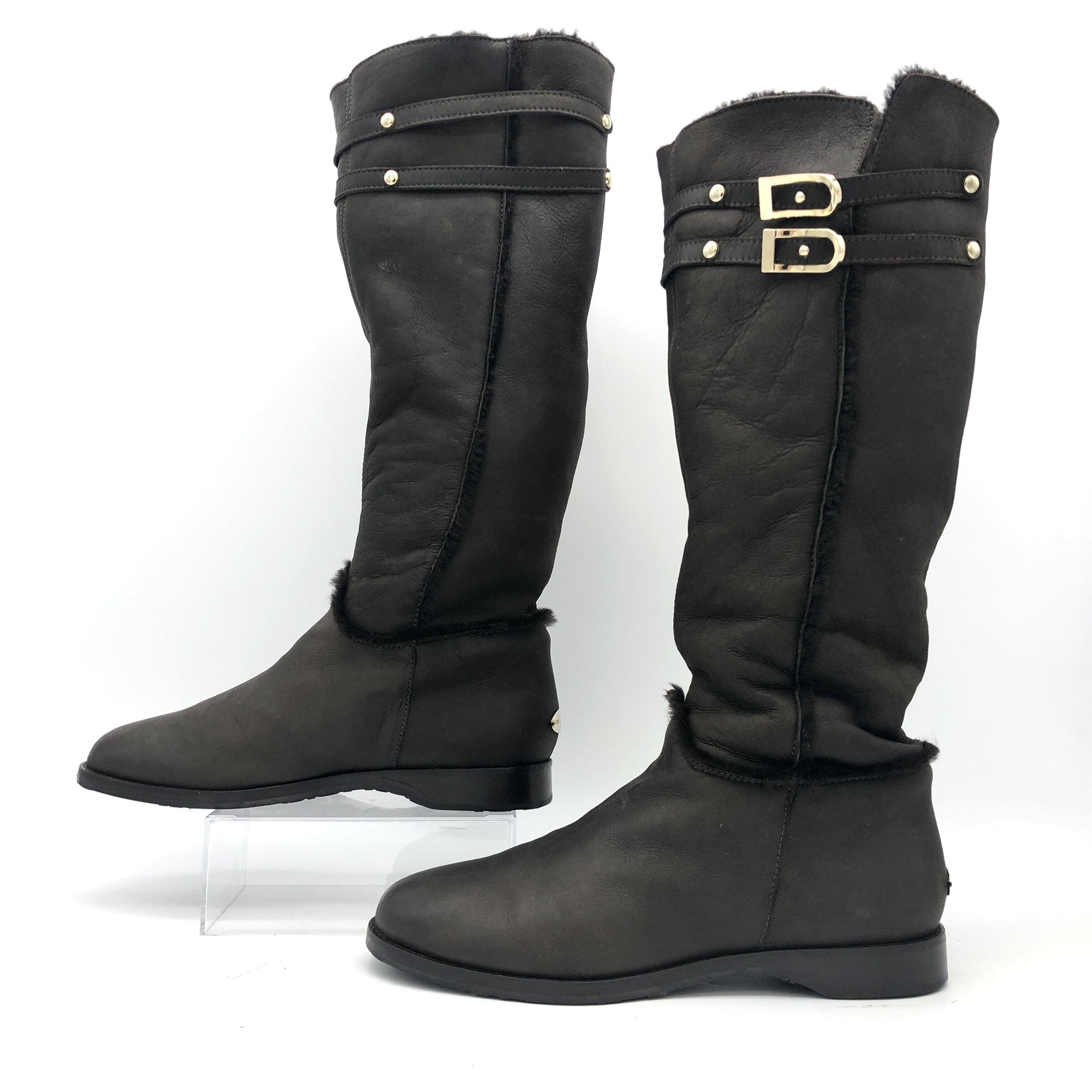 JIMMY CHOO ロングブーツ 本革 ボア ゴールドロゴ ブラウン 1487A