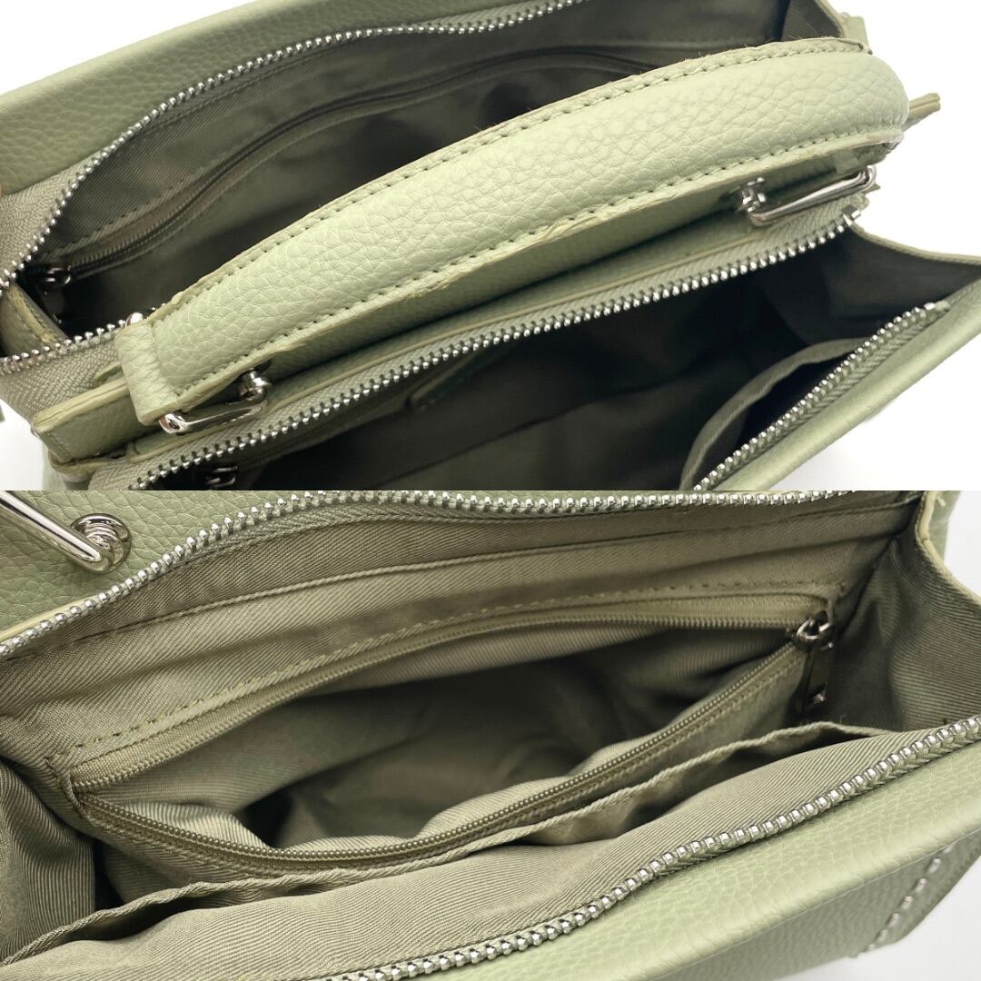 若葉色の革調素材が、爽やかな雰囲気を醸し出します。