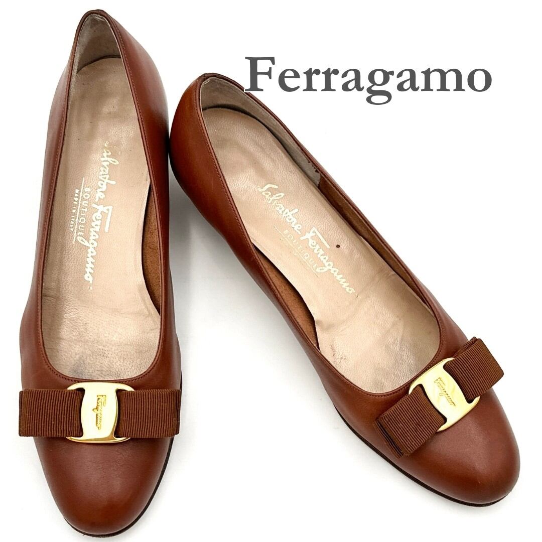 Ferragamo パンプス 本革 ヴァラリボン ブラウン 620T