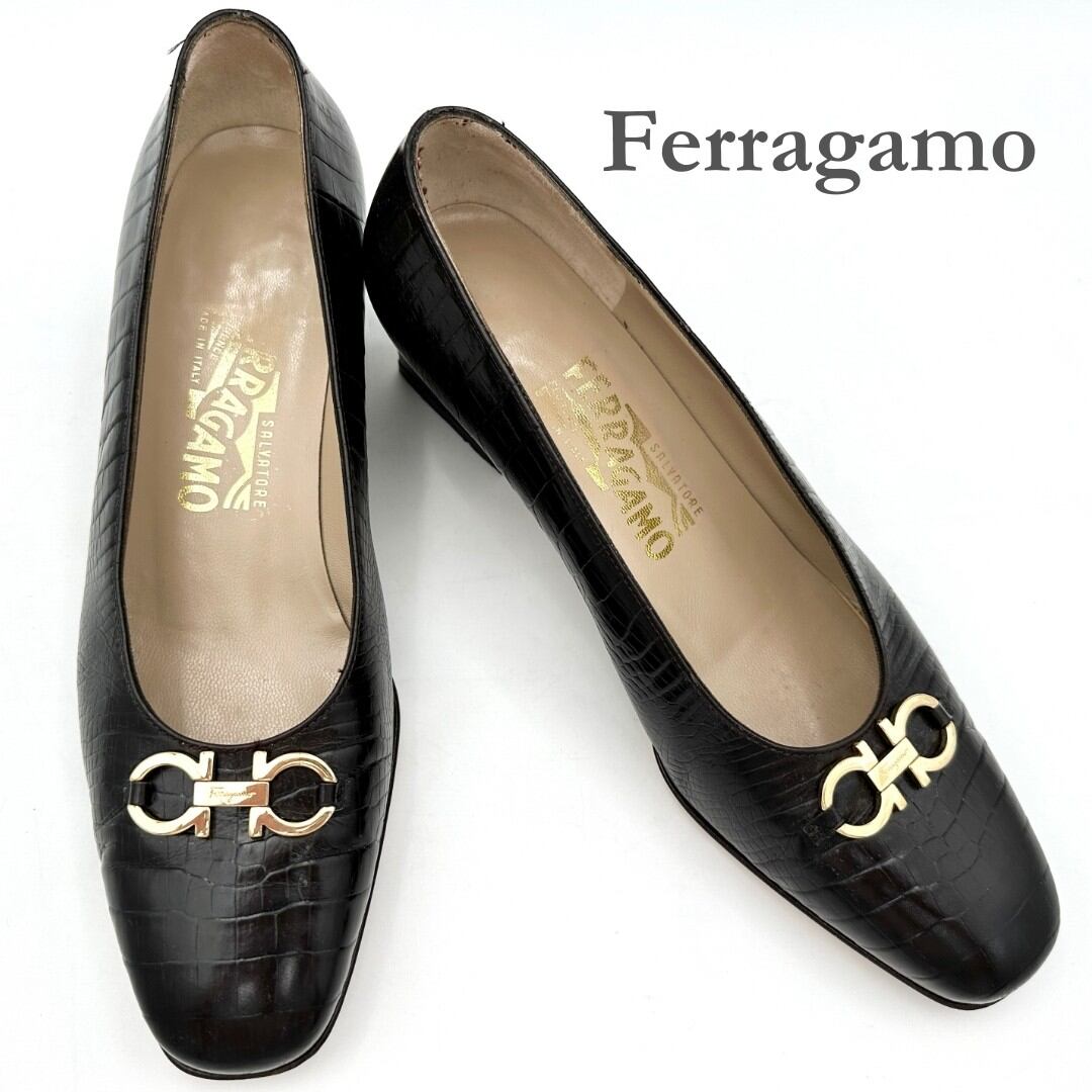 Ferragamo パンプス 本革 ガンチーニ ダークブラウン 630T