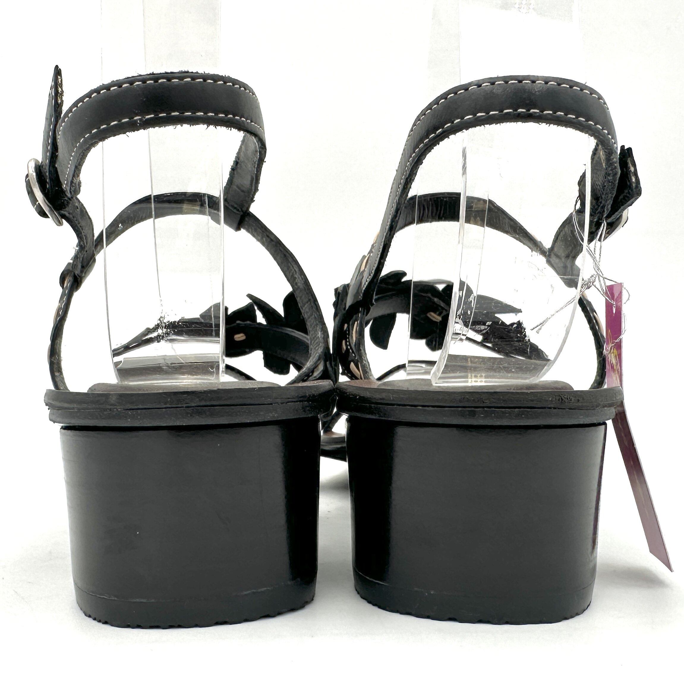 ■新品■ Riz raffinee サンダル 本革 花 ストラップ ブラック 668A
