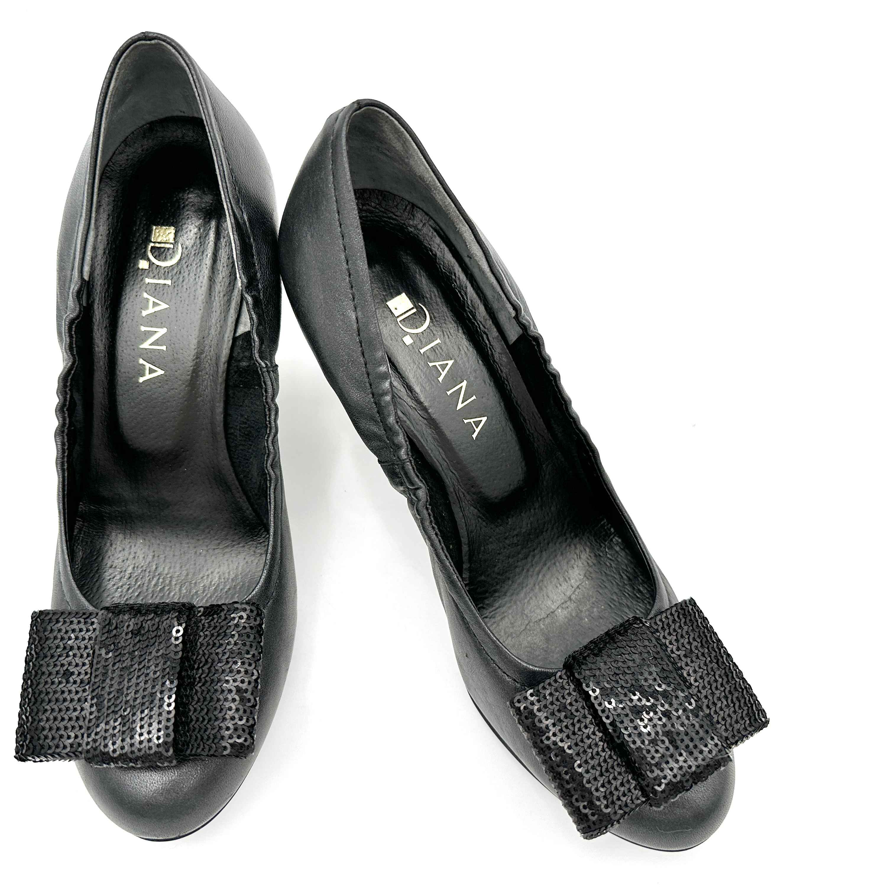 DIANA パンプス ラウンドトゥ リポン グリッター ブラック 776T