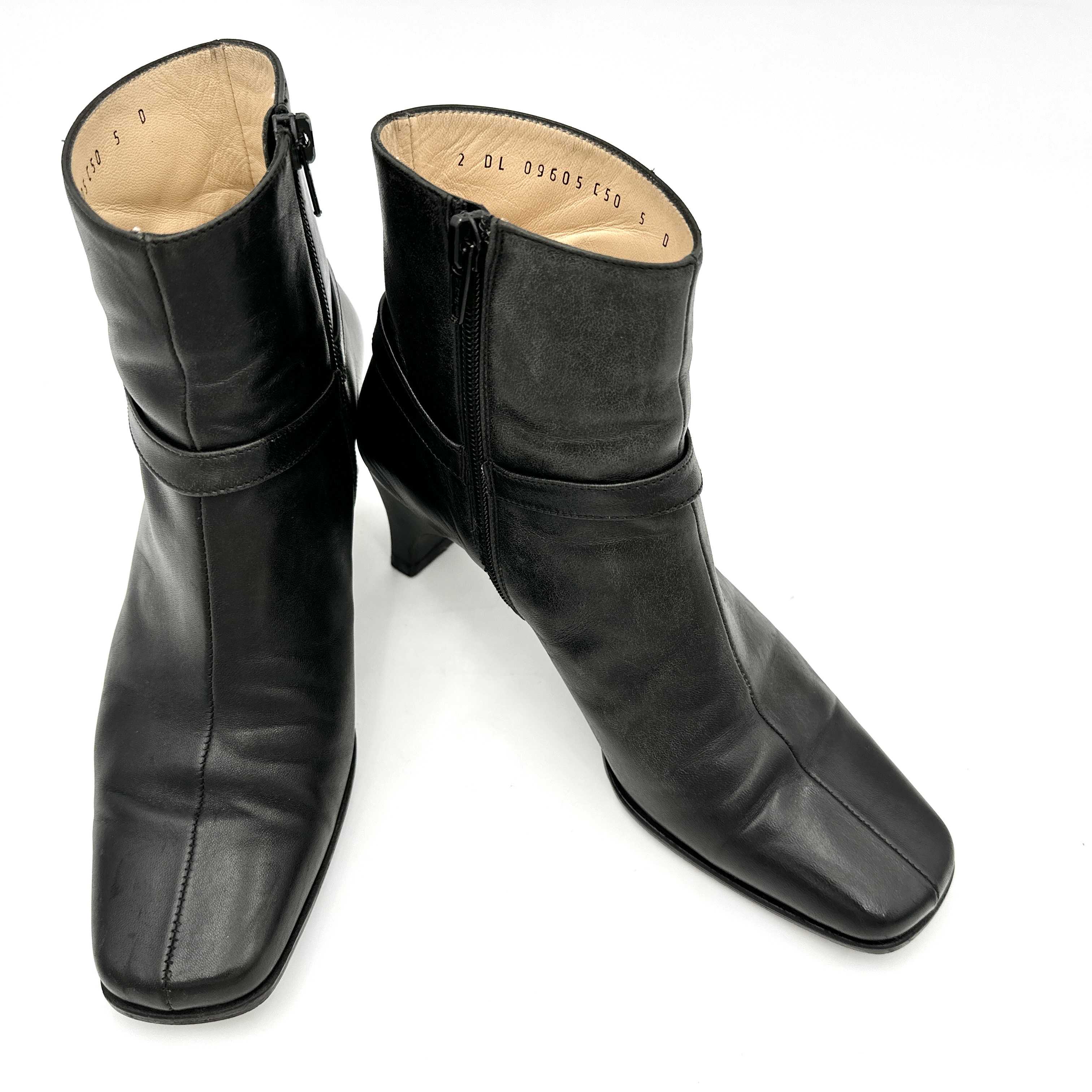 美品のショートブーツは、高級感溢れる黒革が足元を格上げします◎