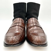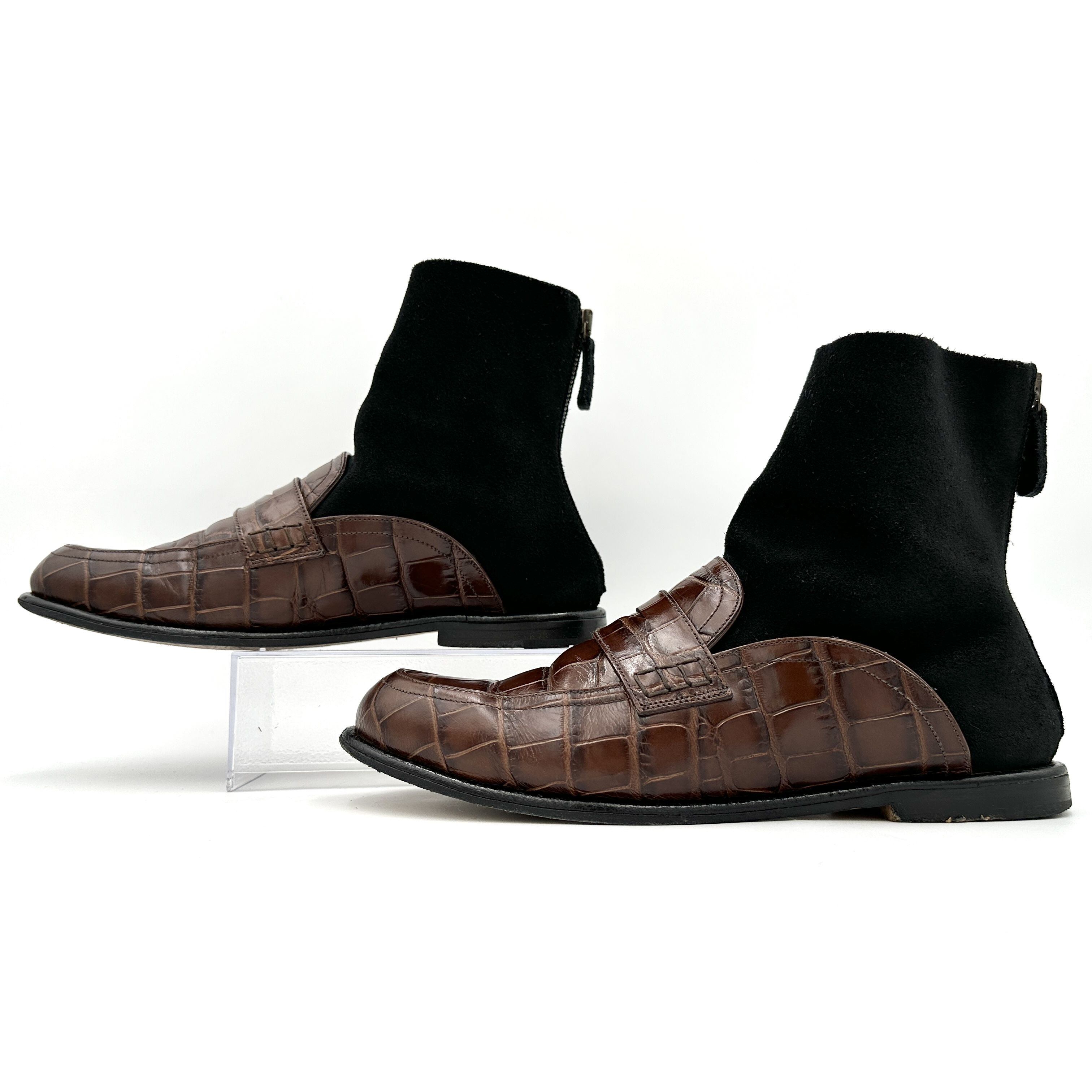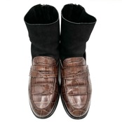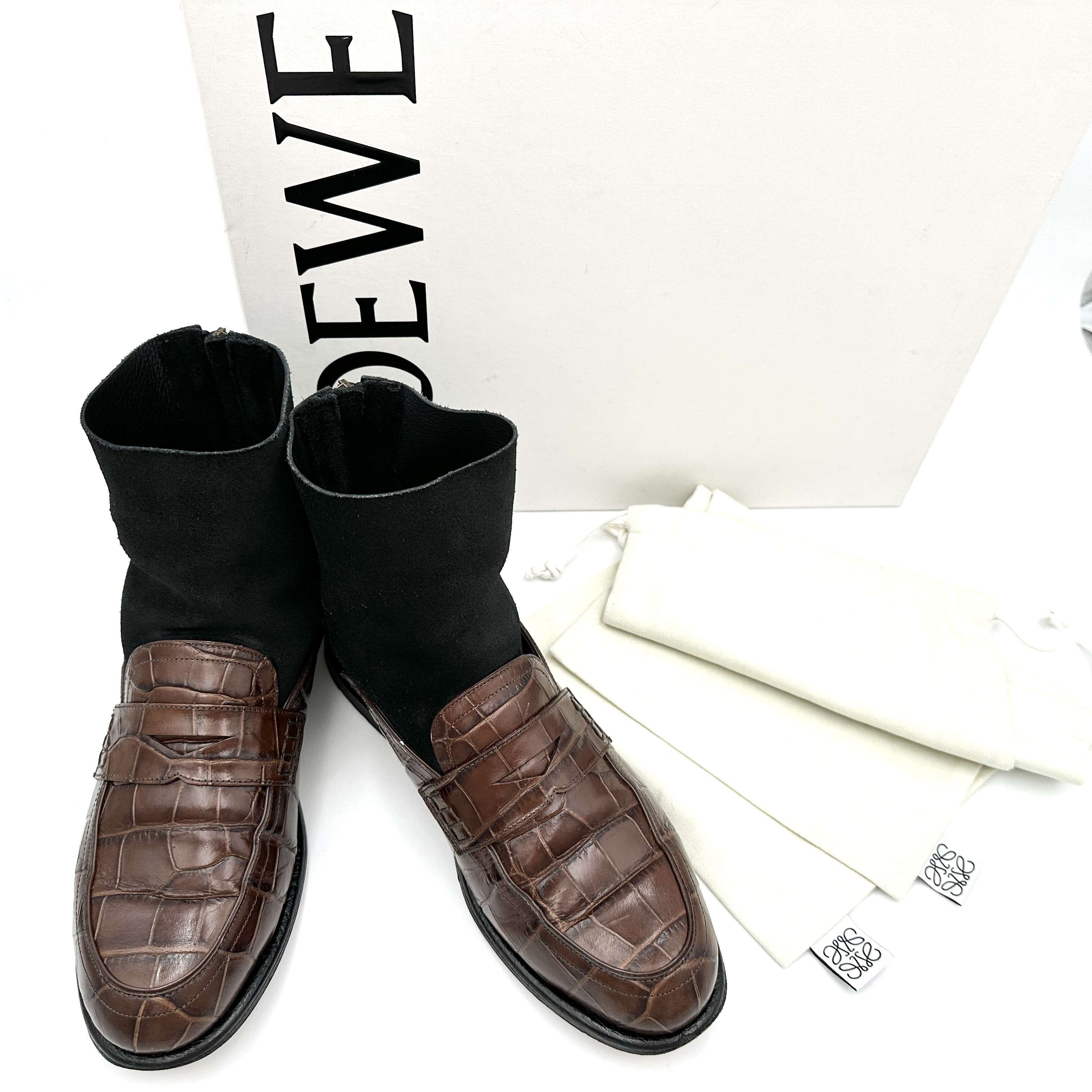 LOEWE ソックスローファー クロコ レザー スエード ブラウン 884T