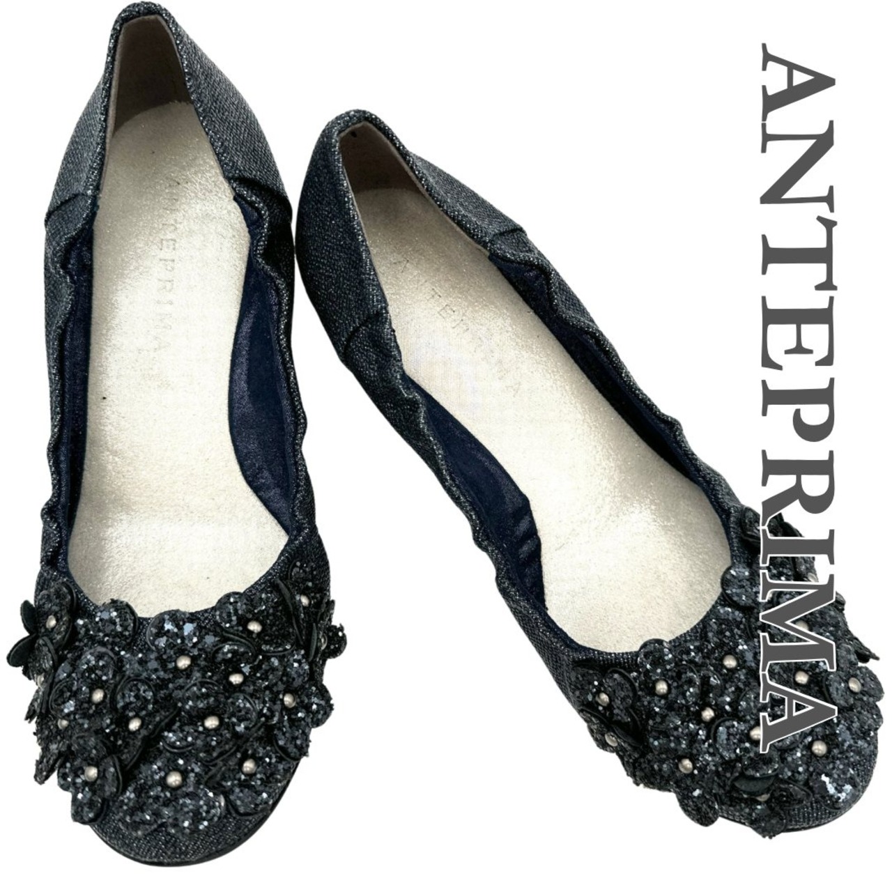 ANTEPRIMA バレエシューズ 花 ラメ ネイビー 1916T