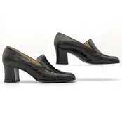 REGAL ヒールローファー 本革 クロコ型押し スクエアトゥ ダークブラウン 2020A
