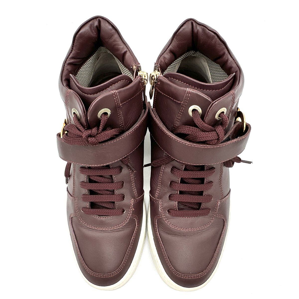 ボルドーの本革素材が大人の品格を演出し、ゴールドロゴとサイドジップが洗練されたアクセントに。