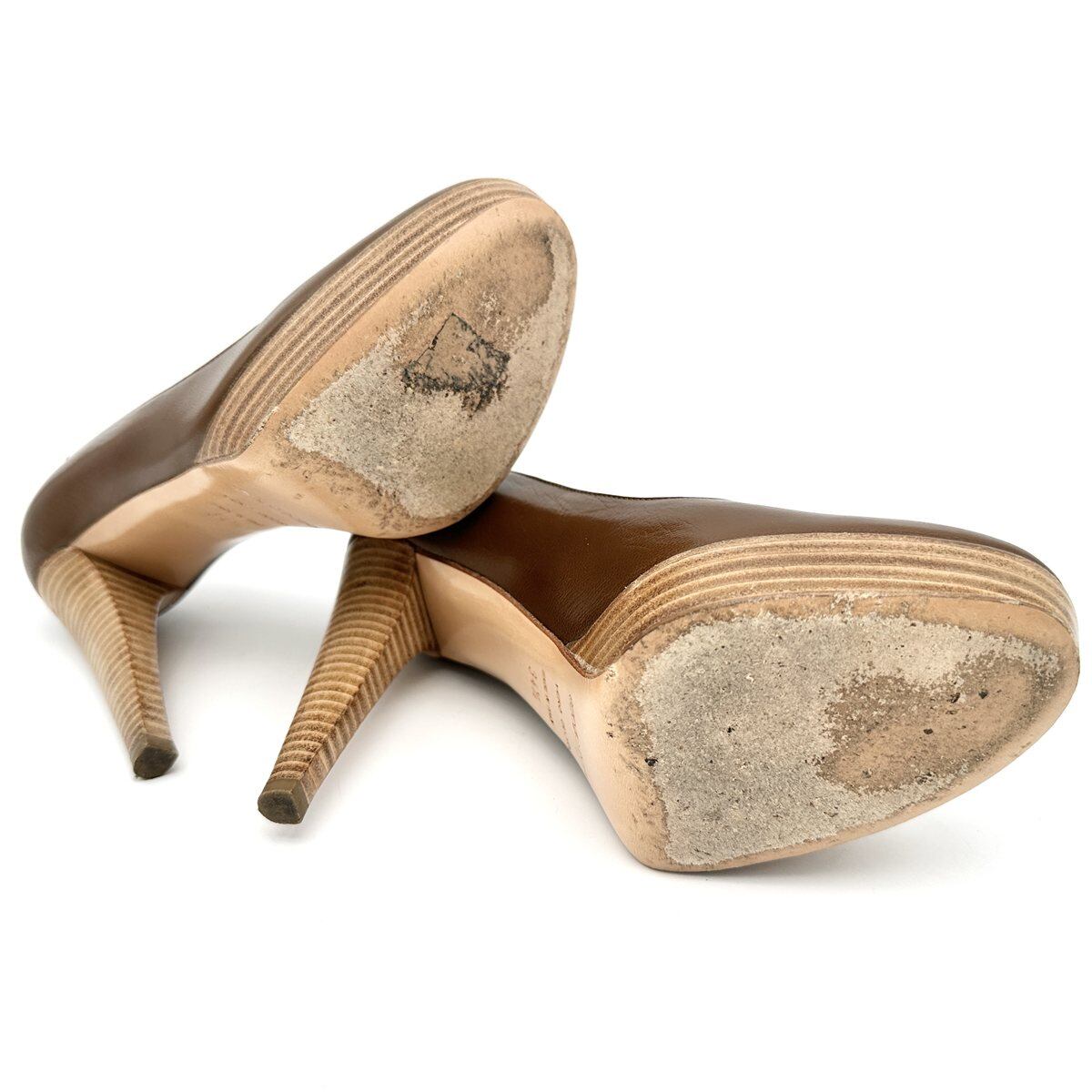 落ち着いたブラウンカラーとラウンドトゥのデザインが、上品で柔らかな印象を与えます。